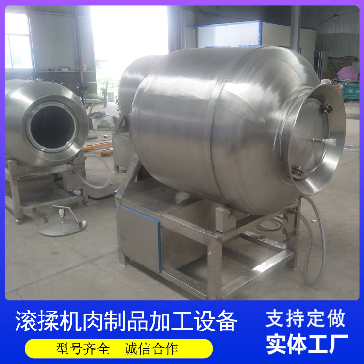 醬肉以濃鬱的醬香、緊實(shí)的肉質深(shēn)受消費(fèi)者喜愛,其加工核(hé)心在於醬料的充分滲透與(yǔ)風味留存。傳統醬(jiàng)肉醃製多采用人工塗抹醬料後靜置,不僅勞動強(qiáng)度大,還(hái)存在醬料附著不均(jun1)、風味滲透緩慢等問題,且批量生產時難以保證每塊醬肉的(de)風味統(tǒng)一,製約企業產能提升。真(zhēn)空滾(gǔn)揉機的應用,為醬肉加工提供了標準化解(jiě)決方案。