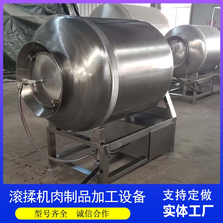 傳統風幹腸依賴自然發酵,周期長且品質不穩(wěn)定。真空滾揉機引入現代工藝,通過真空(kōng)拌餡,排(pái)除肉粒(lì)間空氣,使腸體填充(chōng)緊實,幹燥後表麵平整無(wú)凹陷。滾揉促進了調料與肉粒的融合,加速了發(fā)酵前期的風味形(xíng)成,縮(suō)短(duǎn)了生產周期(qī)。真空環境抑製了雜菌生長,保證了(le)發酵過程的安全可控。相(xiàng)比(bǐ)傳統腳踩或手拌,滾揉機生產的風幹(gàn)腸切片性好,肥瘦分布均勻,風味醇厚穩定,成功實現了傳統美食的工業化升級,滿(mǎn)足了市場對品質臘味的期待。